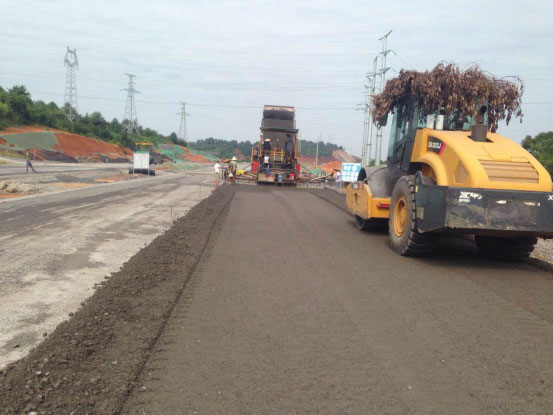 3、道路工程:K0+060~K2+040右幅機(jī)動(dòng)車道已完成第一層瀝青攤鋪,左幅機(jī)動(dòng)車道已完成240米第一層瀝青攤鋪,左右幅輔道水穩(wěn)攤鋪完成1800米