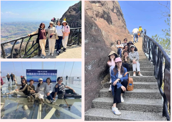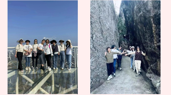 山勢陡峭而險峻,山上峭壁錯列,怪石嶙峋,巨石斜聳突兀似牛角,順南或北的險徑攀援而上,時而令人頭暈?zāi)垦?,時而令人心驚膽顫。娘子軍們氣定神閑、鼓舞加油,順利通過“玻璃棧道”、“玻璃大橋”等懸崖景點,完成石牛寨一小步,征服內(nèi)心一大步。充分展現(xiàn)出長沙市政女職工激情拼搏、團(tuán)結(jié)協(xié)作的精神風(fēng)貌。
